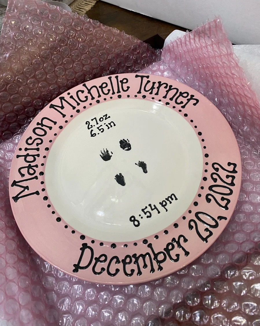 “When my water broke prematurely at only 16.5 weeks pregnant, our world went from being ecstatic about just finding out our baby due in June was a girl to complete fear. Everything was a whirlwind. Our baby girl was born 12/20/22. We felt lost, crushed, confused, overwhelmed, & broken. The nurses at Madison Hospital were fantastic and told us about Rykers Rainbow. We were given a gift box & although we did not know you, we felt we knew you! I no longer felt like I was alone in our pregnancy loss journey. Pregnancy loss has not been a subject most women talk about so it quickly can feel lonely, shameful and isolating. We received a plate with Madison’s hand and feet prints and you all were our sponsor. We cannot thank you enough for using your journey & Ryker’s life as a way to give back! You have made an impact in our life & we thank you!”